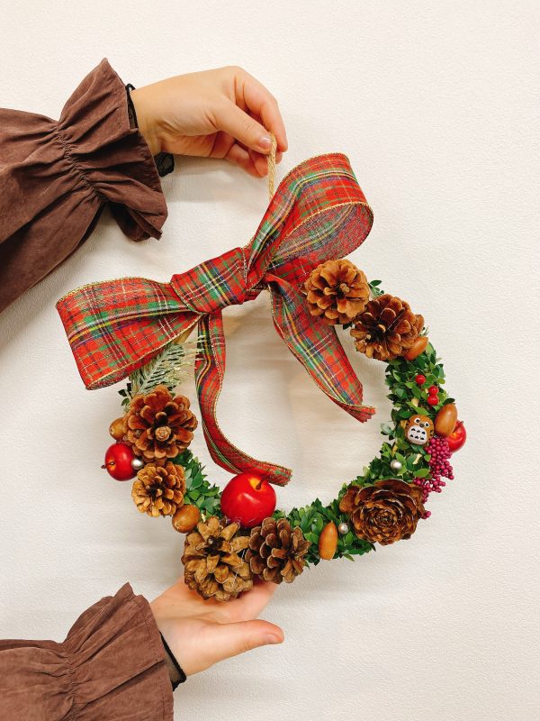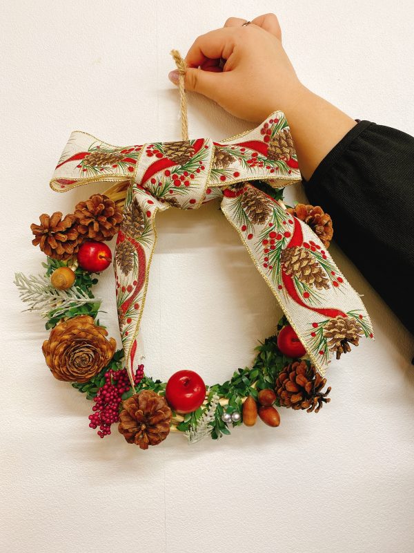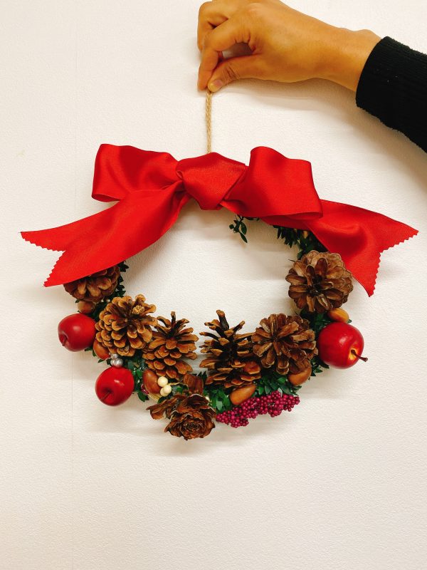 参加された皆様が実際に完成したクリスマスリースが下記の写真になります。