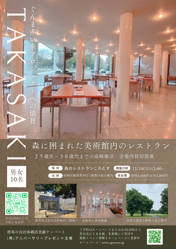美術館内にある森のレストランでの高崎婚活の詳細は下記の通りになります。